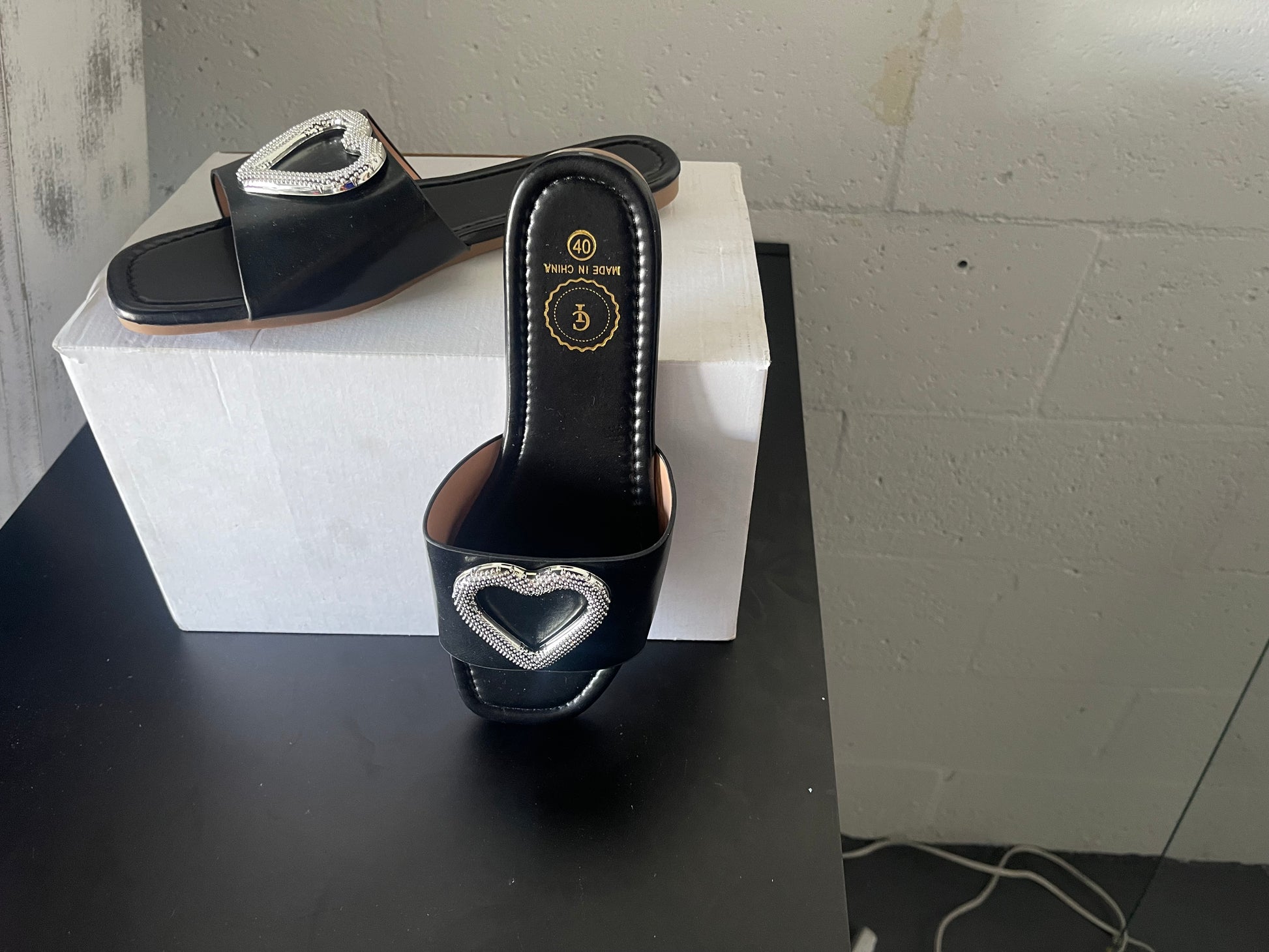 Black Heart Slip-On Sandals – Women’s Fashion Slides
